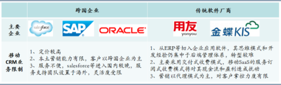 跨国企业、传统软件厂商开展移动CRM业务受限
