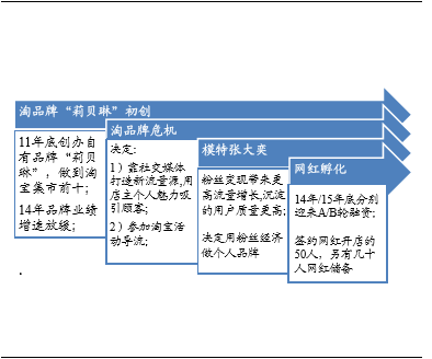 如涵起源淘品牌“莉贝琳”,2014年转型网红经纪公司。杭州如涵电商是国内领先的网红电商平台综合服务商和网红经纪公司。公司以销售女装起家,2011年公司创始人、CEO冯敏创办了淘品牌“莉贝琳”,同创业团队从事该品牌设计、制作和销售,不到两年做到双金冠,年销售额近亿元,成功跻身淘宝销售前十,但2014年品牌业绩增速放缓。同年公司与原瑞丽模特张大奕签约合作,为其打造独立品牌后,逐渐退出淘品牌运营,开启网红经纪运营模式。