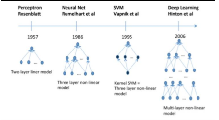 在深度学习出现之前,机器学习领域的主流是各种浅层学习算法,如神经网络的反向传播算法(BP算法)、支撑向量机(SVM)、Boosting、最大熵方法(LR,LogisticRegression)等。这些算法的结构基本上可以认为带有一层隐层节点(如SVM、Boosting),或没有隐层节点(如LR)。其局限性在于有限样本和计算单元情况下对复杂函数的表示能力有限,针对复杂分类问题其泛化能力受到一定制约。