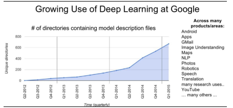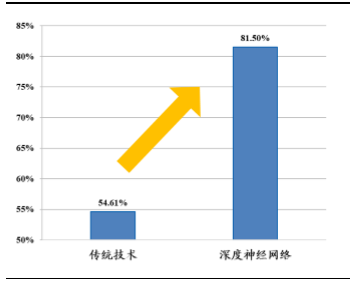 在短短几年里,研究报告深度学习颠覆了语音识别、图像分类、文本理解等众多领域的算法设计思路,渐渐形成了一种从训练数据出发,经过一个端到端的模型,然后直接输出得到最终结果的一种模式。它的应用极大提高了机器学习的能力,促使在计算机视觉和语音识别等各领域实现突破,使识别结果更加准确。如在计算机视觉领域,在ImageNet比赛中(对100万张分辨率300×300左右,有1000个类别的图片进行识别),通过深度学习,图像识别准确率得到了极大的提高;通过采用深度神经网络技术,微软大大提升了语音识别的准确率,错误率降低至18.5%,准确率比传统技术提升了33%。这让流利的语音程序变得更加现实。
