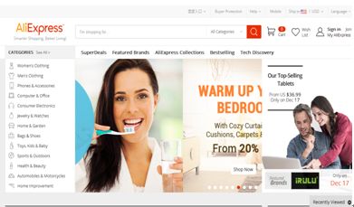 依托于淘宝大生态,淘宝店铺可直接搬家至速卖通平台,全球速卖通覆盖3C、服装、家居、饰品等等共30个一级行业类目;其中优势行业主要有:服装配饰、手机通讯、鞋包、美容健康、珠宝手表、消费电子、电脑网络、家居、汽车摩托车配件、灯具等。