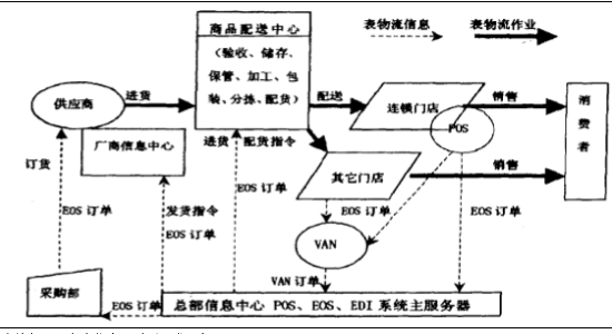 连锁超市物流系统的核心是以情报信息为基础的订货、发货系统。主要有四个部分。(1)进货物流。该过程以运输为主。(2)储存和售前准备物流。该过程包括商品的仓储、保管、分拣、上架以及不断地补充的过程。(3)商品销售物流。即把商品传递给消费者。(4)逆向物流。是商品退货、回收和废弃物流。