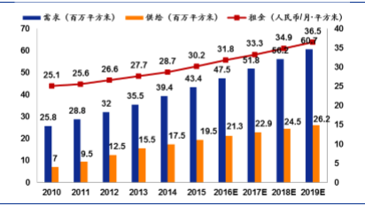 但现实中的现代物流设施供需结构却短期呈现失衡。中国当下的现代物流设施建设速度落后于需求,根据戴德梁行统计数据与预测,2015年,中国现代物流设施行业的需求/供给比为44.9%,供给缺口达到2390万平方米。但就戴德梁行的预测而言,不论是供给亦或是需求仅有个位数的增长:需求2016E-2019E的CAGR为6.3%,供给则为5.3%,因此一旦供给端出现较大扩容,当前的供小于求亦存在被逆转的可能。