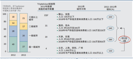 2013年中国二三线城市旅游需求增速是一线城市的数倍