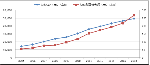 中国人均GDP和人均售彩额度呈高度正相关性