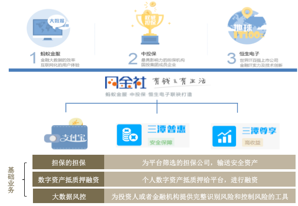 三潭金融是由蚂蚁金服、中投保和恒生电子共同组建的大众金融资产交易平台。平台的优势体现在三股东优势的互补,其中蚂蚁金服在综合风险、交易和资产规模管理方面有着丰富的经验,中投保将风控方面的优势运用到产品设计中,恒生电子则主要提供IT服务。