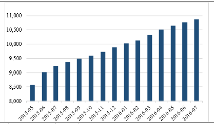 2015-2016年自然人投资者数量持续增长(单位:万人)