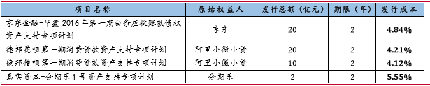 消费金融资产证券化ABS产品发行数量不断增加。近期消费金融资产证券化产品的资金成本通常为4.1%-5.5%之间。我们以资产证券化产品成立公告时的利率进行计算,由于未披露中介费用,考虑实际发行行情,假设券商资管、托管行、律师、会计师、评级机构等的中介费用打包合计年化0.5%。则可知,支付宝花呗、借呗ABS发行成本约为4.21%、4.12%,京东白条ABS发行成本约为4.84%,中银消费金融ABS为浮动利率发行(成本约为3.9%)。但是,考虑到阿里与京东的品牌价值,及其消费金融产品直接涉及消费场景,对下游还款的把控能力与风险管理能力较高(最高优先级评级都为AAA),因此在询价时优势较高,发行成本相对较低。若为非强势原始权益人,则发行成本相对较高,如分期乐的发行成本约为5.55%(尽管优先级同为AAA)。因此,我们认为,持牌类和大型电商类的消费金融ABS类的资金成本为4.1%-5.5%。