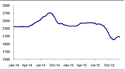 玉米价格自2013年下半年开始逐步走低,而今年下半年更是出现大幅下滑,国家也7年来首度下调临储收购价格0.13元/斤至1元/斤。虽近期由于国家开展临储收购对玉米需求形成支撑,玉米市场价格有所回升,但仍处于2011年以来低位,截至12月15日,全国玉米现货均价为2085元/吨。