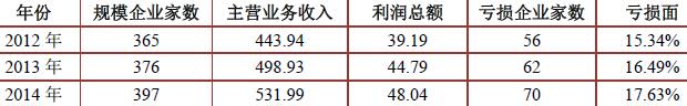 从上图看以看出,我国塑料成型设备行业规模以上企业平均每家利润水平略有波动,基本稳定在1200万元左右的水平,行业利润总额/主营业务收入也是略有波动,但也基本稳定在9%左右的。2012-2014年我国塑料成型设备行业企业情况