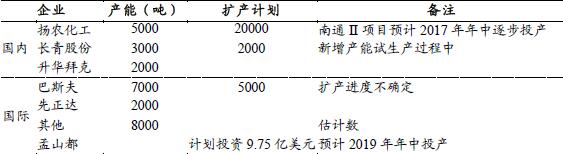 全球麦草畏原药产能增长情况