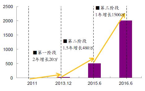爱奇艺的付费业务历经三个阶段:第一阶段(2011到2013年年底)共发展了20万的用户数,两年多的时间里面主打电影版权内容;第二阶段(2013年到2015年6月)进入快速成长期,受益于两大外部因素:1.2013年年底的剑网行动打击盗版;2.移动支付(支付宝+微信)的快速普及;第三个阶段则是依靠独播电视剧\自制剧,拉动了付费用户的爆发性增长,并培养了用户付费习惯。爱奇艺行业地位变化