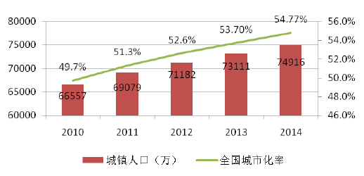 根据国家统计局的人口结构数据,十年来我国城市人口不断增长,我国已进入持续的城镇化阶段。据《中国流动人口发展报告2011》预测,至2020年我国城镇人口将超过8亿。