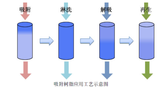 吸附分离树脂的应用技术是指根据应用领域的需要对吸附分离树脂进行选型,确定运行工艺,将材料填充进树脂柱,按照设计的应用工艺控制原液经过吸附、淋洗、解吸、再生过程,达到分离和纯化的作用。
