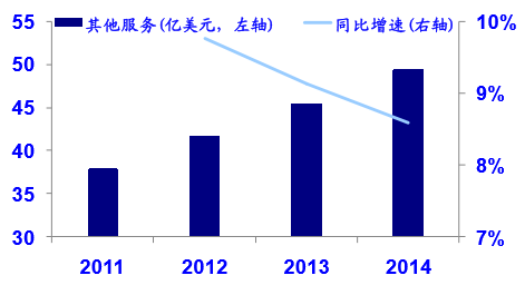 2011-2014年美国其他服务消费量与同比增速