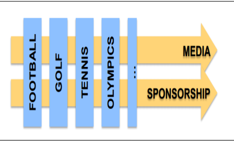 (1)体育IP资源紧握在手。体育经纪、赛事运营等业务将上游体育资源如赛事版权、明显IP等牢牢掌握,然后通过中游的赛事内容制作和转播权销售实现“一次销售”,再通过体育营销和赞助服务、体育咨询实现“二次销售”,多渠道变现。