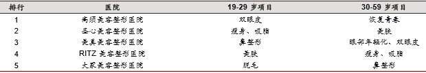 日本国内整形医院与各年龄段最受欢迎项目排名
