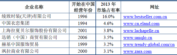 国内中档休闲服饰行业目前整体处于充分竞争状态,国际和国内品牌众多,竞争较为激烈。同行业其他企业情况如下: