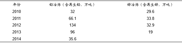 我国淘汰铅锌冶炼产能情况(2010-2014)