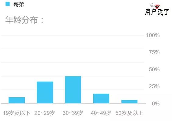 从年龄分布图中可以看到,哥弟的主要消费群体是30-39岁,其次是20-29岁。