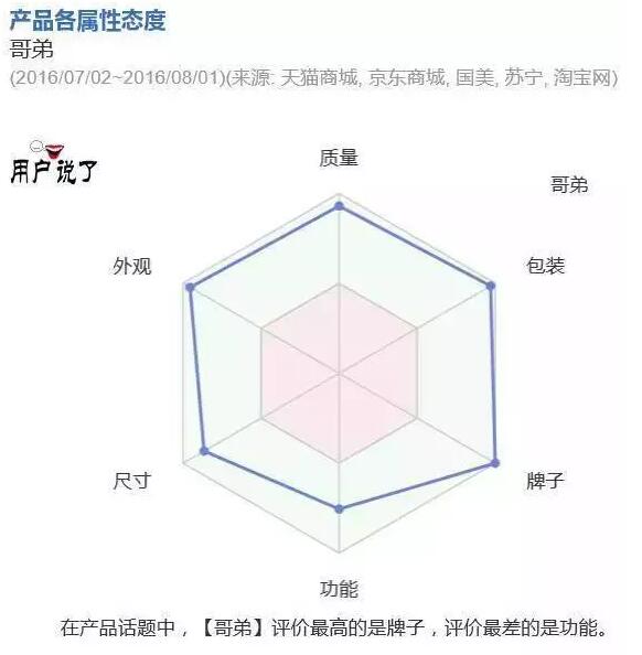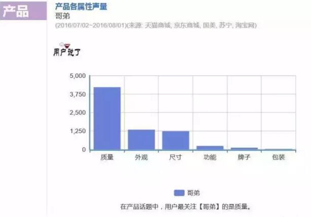 产品一直都是品牌发展之本,在哥弟产品话题中,消费者最关注的是质量,而评价最好的是品牌,最差的是功能。时尚,舒适,质量好,好看是消费者对哥弟产品的主要正面评价,说明消费者对产品的质量,外观都是很满意的,而负面评价主要有买大了,很薄等,从这也可以看出消费者对产品尺寸和功能性的负面声音。这也提醒哥弟要在这方面多下功夫,改善产品尺寸和功能方面的问题,提高产品的性价比,用高性价比的产品维护更多的回头客。