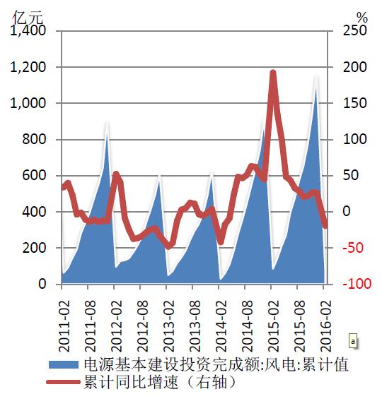 我国风电基本建设投资完成额变动情况图