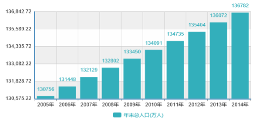 我国是全球人口最多的国家,截至2014年底,我国总人口约达13.67亿。1978年至2014年,我国人口出生率由18.25‰下跌至12.08‰,而死亡率则相对稳定,维持在6‰—7‰左右,最近几年的人口自然增长率维持在5‰左右。