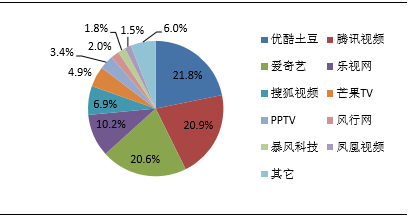 从移动视频广告市场规模看,2016年第1季度,中国移动视频广告市场规模达34.9亿元人民币,在整体视频广告市场中的占比达50.8%比上一季度增长0.7个百分点,与2015年1季度相比增长了15个百分点。《中国网络视频广告市场季度监测报告2016年第1季度》数据显示,2016年第1季度中国网络视频广告市场收入份额中,优酷土豆占21.8%,腾讯视频占到20.9%,爱奇艺占到20.6%,分别位居市场前三位置。