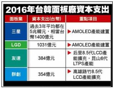 其中在资金问题上,要从二○一一年马政府时代,金管会决议加强查核银行放款面板业说起。因为金管会的管制,导致银行团对面板业放款意愿降低;但是这几年来面板业靠自己努力,包括友达与群创都已连续四年获利,因此,面板业者希望从银行放款的“四大惨业”除名,这样才有办法进行筹资,持续投资先进制程,甚至能进一步投入软性OLED产能建置。