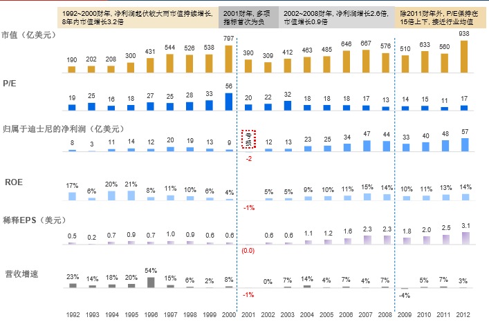 迪士尼市值:190亿美元=>1157亿美元