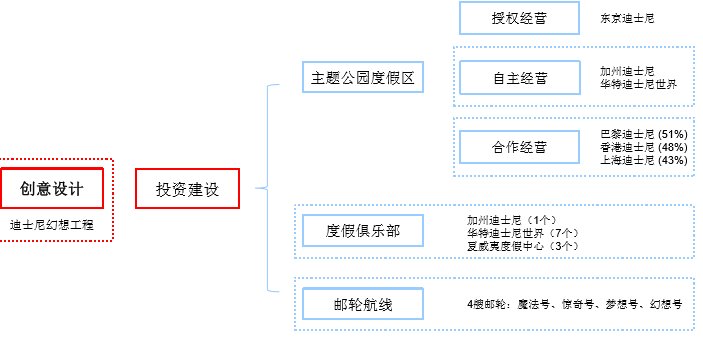 主题公园度假区:门票收入、酒店房间收入、食品饮料销售收入、商品销售收入度假俱乐部:度假房产销售/出租收入邮轮航线:邮轮度假套餐销售收入