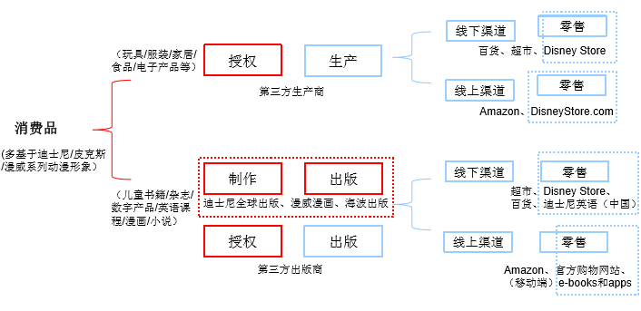 电影尚在制作的初期迪士尼便介入消费品的生产,通常在电影正式上映前6周迪士尼开始将消费品投放市场,为电影造势——核心策略:系列人物或形象管理
