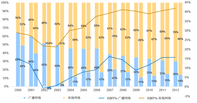 根据DVBCN的数据,美国的有线电视渗透率已从1992年的60%上升至2012年的86%
