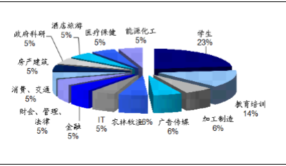 而从需求端看,有教育培训和职业技能提升需求的对象遍布各行业,不仅包括IT、金融财务,更包括房产建筑、广告传媒、消费零售、制造、医疗等等。值得注意的是,本身从事教育培训行业的人员也会有不同行业职业教育需求,因为其自身会面临不同行业的培训对象从而有学习各行业职业技能的动力。