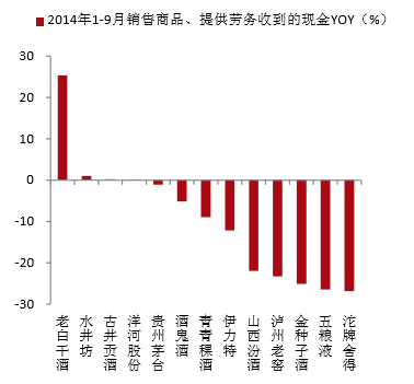 白酒企业前三季度现金流同比增速