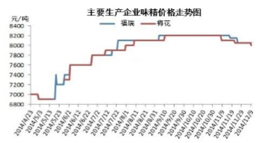味精行业收入和利润总额的大幅增长是调味品行业收入好于去年同期的主要原因,1-10月份味精行业收入和利润总额增速达到30.32%和58.11%,大幅高于去年同期增速。味精行业收入和盈利的大幅改善主要源于味精价格的持续上涨,40目味精的价格从5月初不足7000元/吨上涨到8200元/吨左右,上涨幅度达17%以上,在此推动下,下半年味精行业的收入和盈利大幅改善,并以此推动整个调味品行业营收的改善。
