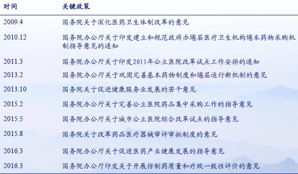 自2009年4月发布《中共中央国务院关于深化医药卫生体制改革的意见》以来,政策发布速度逐年加速,2015年、2016年更是政策大年,国务院常务会议也讨论了多次,新医改渐入深水区。但是,从已经落地的政策来看,改革的侧重点更加偏向于“医药改革”,包括药审改革、仿制药一致性评价的推进,而对“医疗改革”、“医保改革”的推进一直没有一个明确的、成熟的模式,而从取得的成果上来看,或许“三明模式”有可能成为医改突破口的那个“他”。新医改关键政策梳理