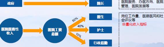 由外至内:突破医院作为事业单位的人事薪酬体系,降低“以药补医”的主观需求。三明医改实施院长目标年薪制与医生目标年薪制,院长年薪由财政负担,而医院工资总额以不含检查化验收入的的医务性收入为基数,并设立相应考核标准。将医务人员收入与医院医务性收入直接挂钩,提高其阳光收入,补偿其由于医改而减少的药品回扣,明面上的平均工资由2011年改革前的4.22万元提升到了2015年的8.9万元,涨幅超过一倍。但同时考核也是严厉的(比如撤院长、吊销行医执照等),奖惩结合,严格落地执行,院长、医生顺势而为才是最优选择。三明薪酬体系改革模式