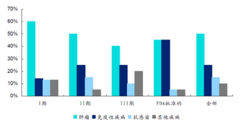 1、肿瘤和自身免疫性疾病单抗齐头并进截至2015年3月,经美国FDA批准上市的单抗药物一共有49种,到2013年底进入临床试验阶段的单抗则接近350种,治疗范围涵盖肿瘤、自体免疫疾病、抗感染、止血、呼吸道疾病等,其中又以肿瘤和自体免疫疾病药物市场最大,种类最多。这两类产品在2012年估算的销售额占到单抗销售总量的40-50%。