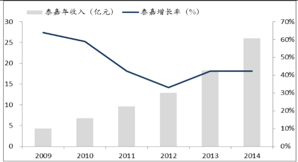 在公司销售人员的稳定增长的基础上,泰嘉(氯吡格雷片)的市场全面开花,业绩保持快速增长,2014年的增速仍然达到42%。