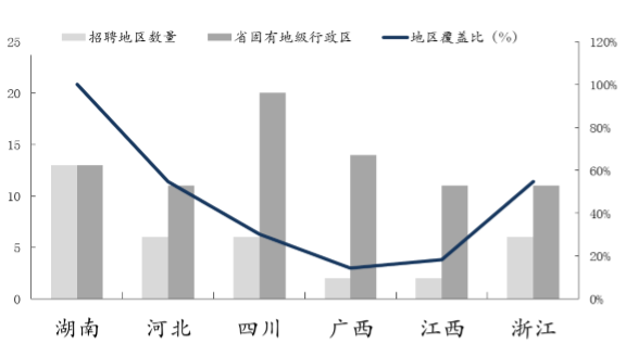 2015年公司招聘人数有所变化,2015年5月份与其它地区相比,阿利沙坦酯片的中标区域湖南市场13个地区全部都在招聘一线代表,行政地区的覆盖率为100%。我们判断不仅仅是补充泰嘉市场销售力量,而应该是阿利沙坦中标省份湖南省的全面拓展的开始,实施阿利沙坦酯片的市场广覆盖策略,迅速开展医院进药,拓展市场。