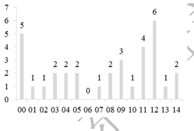 不同时间段进入临床试验的多肽药物的氨基酸个数