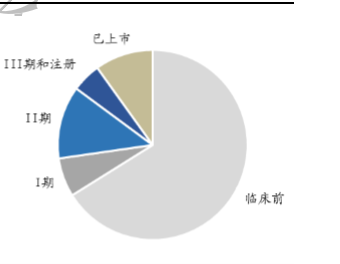已上市多肽药物和不同研究阶段候选药物比例