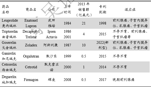 地加瑞克主要用于治疗晚期前列腺癌,其疗效优于亮丙瑞林,但可能出现较为严重的不良反应,销售预期不如亮丙瑞林。加尼瑞克和西曲瑞克主要用于治疗不孕不育,尽管具有抗肿瘤潜力,但没有相关临床试验,限制了临床适用范围。