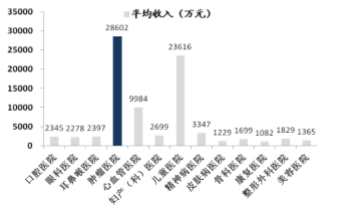 2012年,肿瘤医院平均收入28602万,平均结余(总收入-总支出)2200万,结余率7.6%,在所有专科医院中是最高的。平均净资产收益率为11.6%。