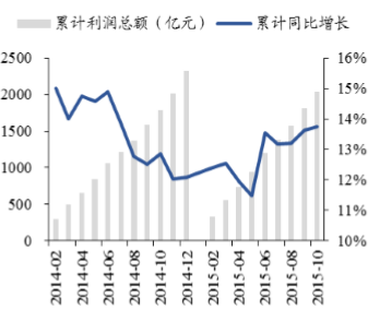 2015年1~10月,国内规模以上工业企业的收入累计增长1.0%,利润总额累计增长-2.0%;而同期规模以上医药制造企业的收入累计增长9.2%,利润总额累计增长13.7%,显示出医药行业依然具有较为明显的相对优势。