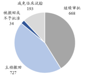 临床数据自查效果显著,目前已得到处理结果的注册申请超过半数。截至12月中旬,自查清单中的1622个品种,除193个减免临床试验外,目前已有727个由企业主动撤回,占44.8%,仅剩668个品种还未做处理,占41.2%。目前有34个药品注册申请被CFDA撤回或不予批准,9家机构被立案调查。随着CFDA现场检查的进一步开展和力度继续加强,预计还有更多注册申请被撤回。