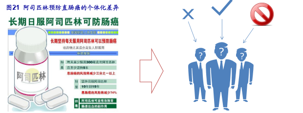 JAMA研究显示,规律使用阿司匹林/非甾体类抗炎药能降低大部分个体30%的结直肠癌风险,但15号染色体上存在遗传变异的个体(约9%的参与者)不能从中受益,12号染色体上携带两个罕见基因型的个体(约4%的参与者)的结直肠癌风险反而增加。