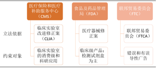 美国基因测序产业由医疗保险和医疗补助服务中心(CMS)、食品及药品管理局(FDA)和联邦贸易委员会(FTC)共同监管。CMS主要通过《临床实验室改进法案修正案》(CLIA)监管消费级和科研级应用,FDA负责临床级产品的审批,FTC负责监管其中错误和有误导性的产品宣传。美国有近80%的实验室通过了CLIA认证,意味着这些临床实验室试验结果的准确性、可靠性和时效性都将得到CLIA认可,从而为其承接更多临床试验项目铺平道路,也意味着CLIA实验室能够根据市场的现实需求,快速地开发实验室自建项目,并通过在临床上的应用给予可靠的临床指导。CLIA认证解决了基础研究和临床应用之间低效率转化甚至脱节的问题,对转化医学和研究成果转化有非常重要的意义。美国大部分液态活检公司都是走CLIA认证,而非FDA认证。中国也借鉴了这种方式来规范国内基因检测公司的竞争。