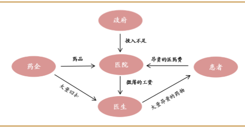 不合理的价格体系背后折射出“以药养医”这一行业现象,该模式在国内已运行了半个世纪,“药”与“医”的价值均未得到合理体现。